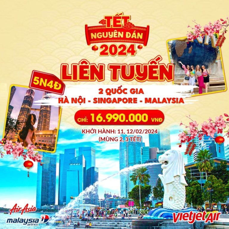 TOUR DU LỊCH TOUR SINGAPORE – MALAYSIA TẾT NGUYÊN ĐÁN 2024 MỘT HÀNH TRÌNH 2 QUỐC GIA: SINGAPORE – MALAYSIA Thời…