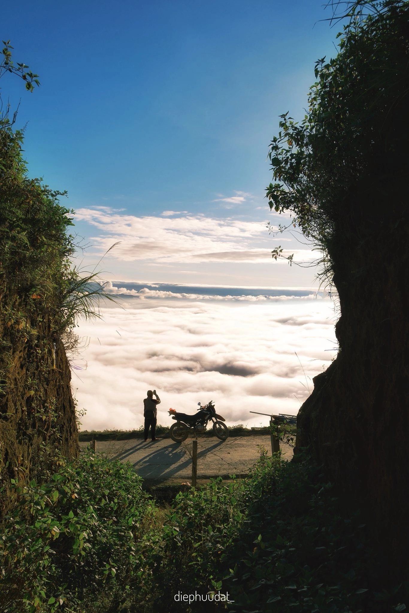 Nếu có nhiều thời gian, du khách di chuyển theo hướng đi sống lưng khủng long hoặc hướng vào Khe Cải, cũng có những điểm săn mây lý tưởng.